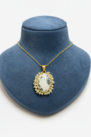 Chain: A fine gold-toned chain completes the necklace, allowing the pendant to stand out as the focal point.