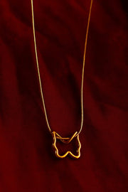 Pendant Design: The pendant features a minimalistic butterfly outline, crafted in smooth, polished gold. Its open-frame style gives it a modern and airy appeal, symbolizing freedom, beauty, and transformation.