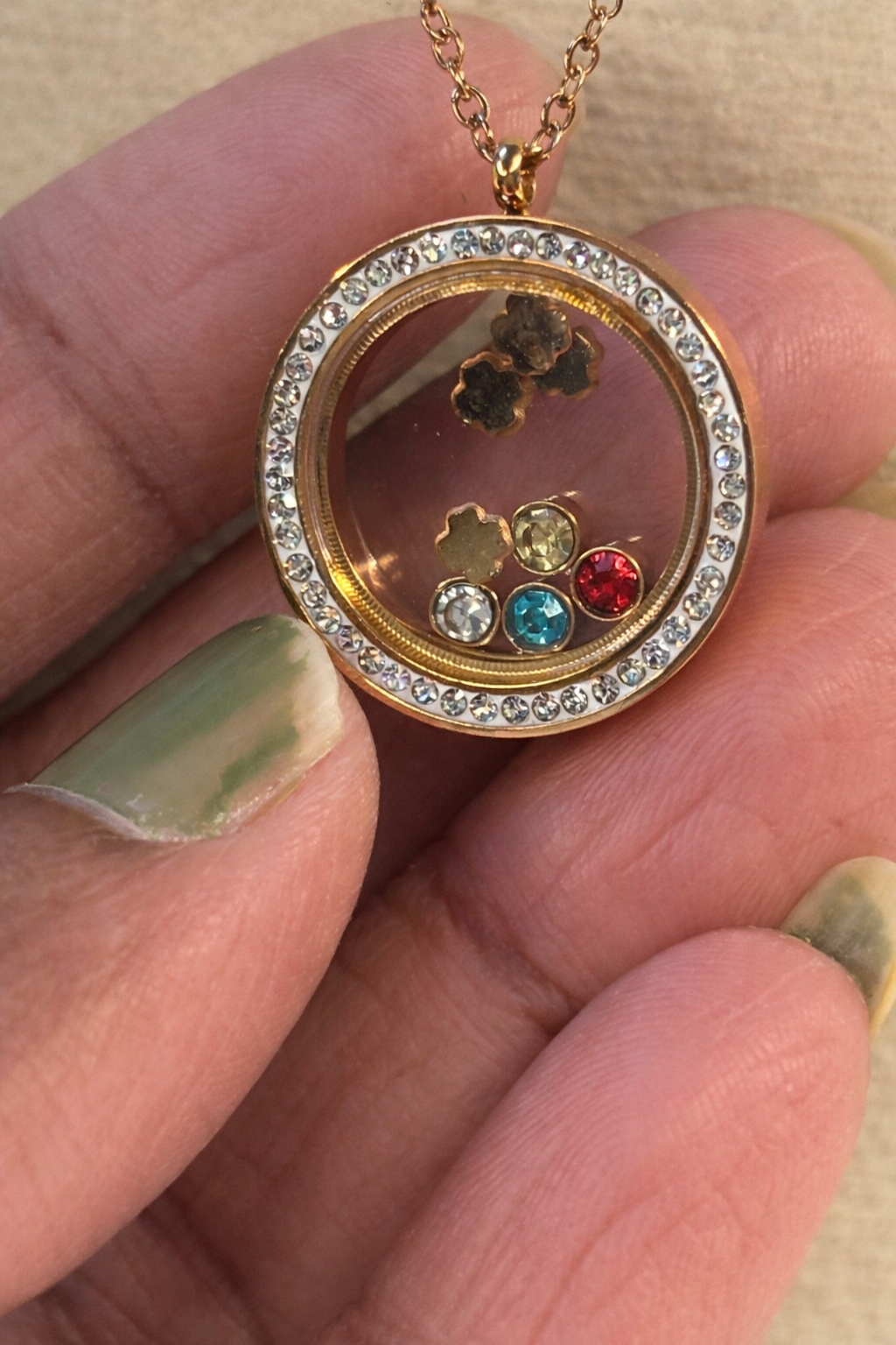 A statement of sophistication and artistry, this necklace features a round medallion pendant adorned with vibrant gemstones including emerald, ruby, and sapphire, set against a deep black base. The pendant is framed with a shimmering halo of crystals, adding brilliance and refinement. Suspended on a delicate gold chain, the design blends modern elegance with timeless charm — a true reflection of Amyraa’s essence of “Beauty with Elegance.”