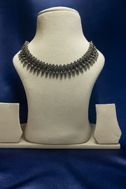 Oxidized Silver Choker Necklace with Teardrop Motifs